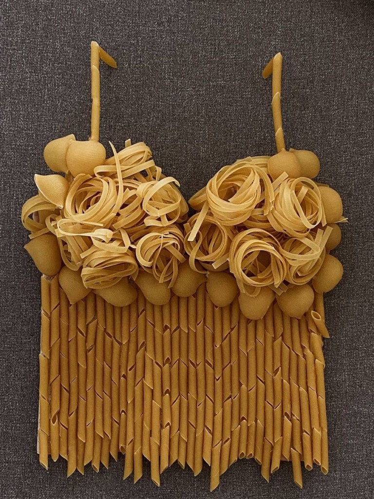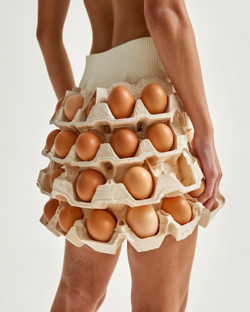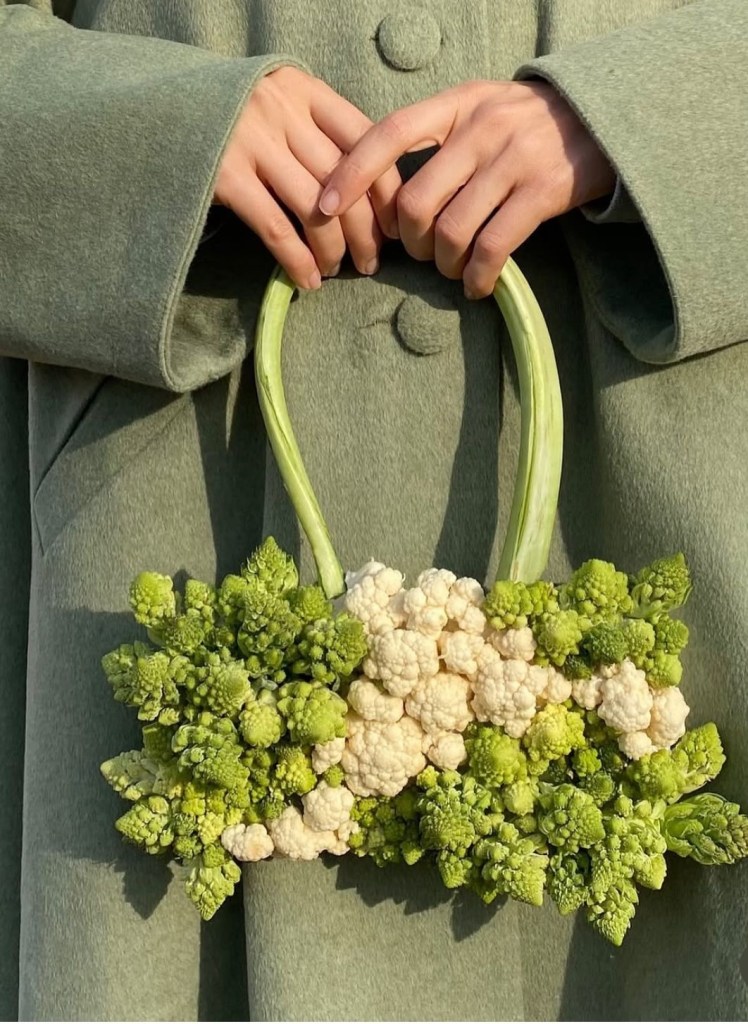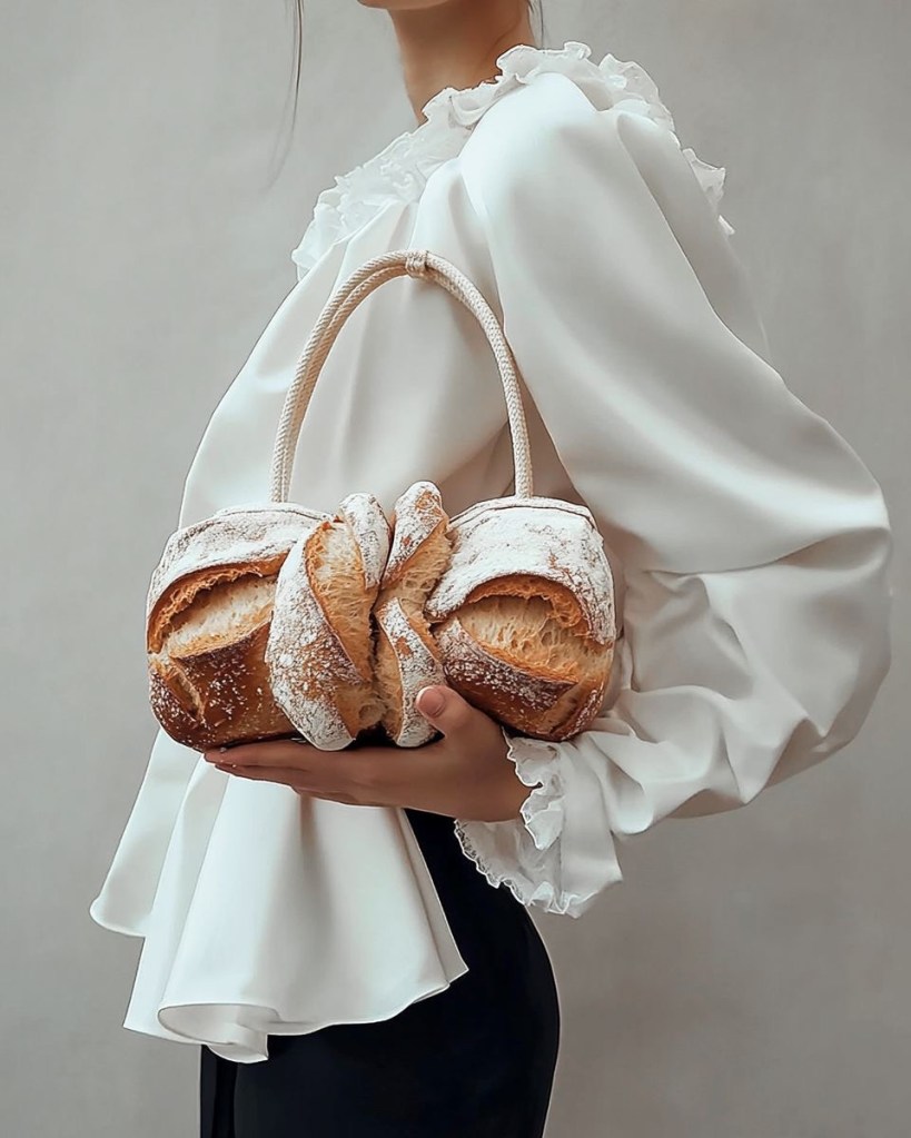 It came up on my Pinterest one day, and now my entire feed is filled with tomatoes as earrings, bread as handbags, citrus slices as jewelry, and skirts designed to hold eggs. It sounds ridiculous at first, but when you actually look at the pictures something shifts. Let me show you first…